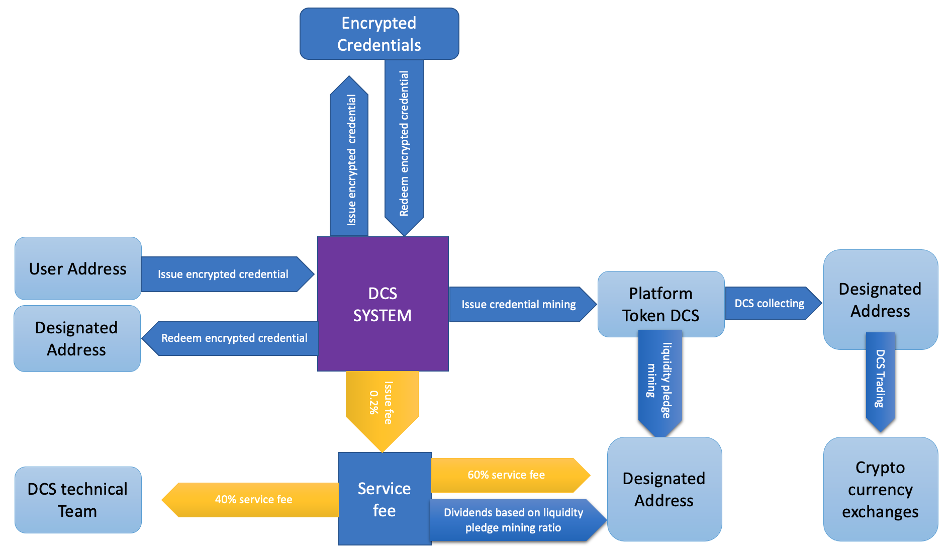 Each anonymous application scenario accesses or directly uses a certain amount of DCS or defines its own token and exchanges it with DCS at a certain rate. With the gradual enrichment of application scenarios, DCS is consumed more and more, and the value of DCS is increasing.